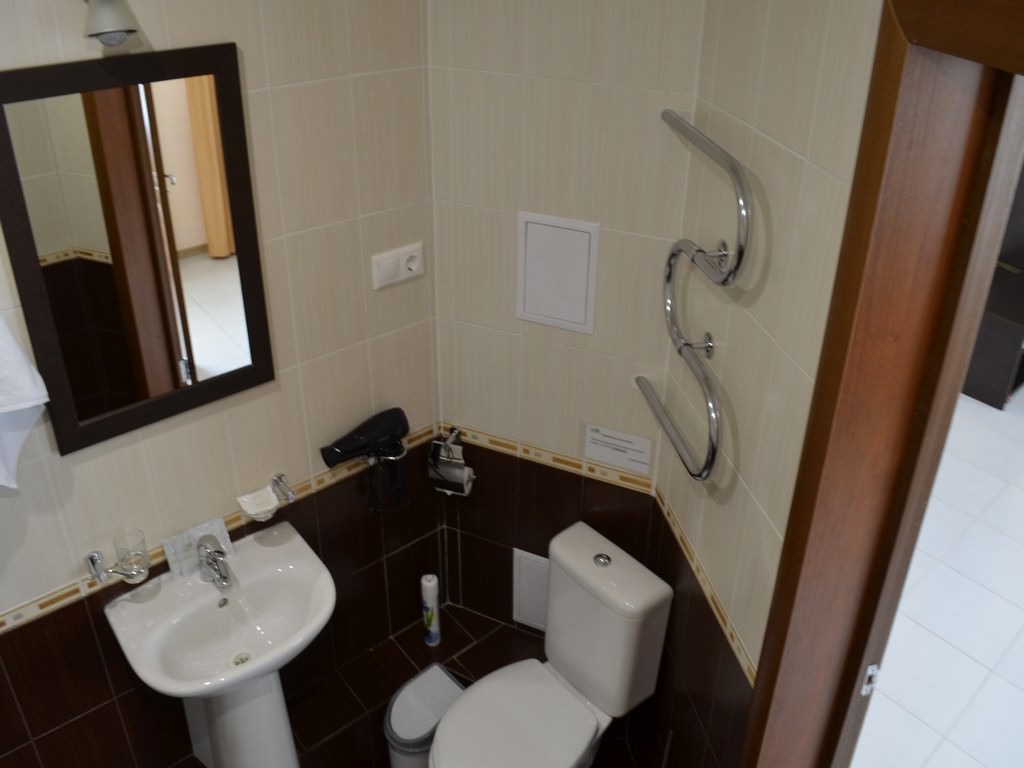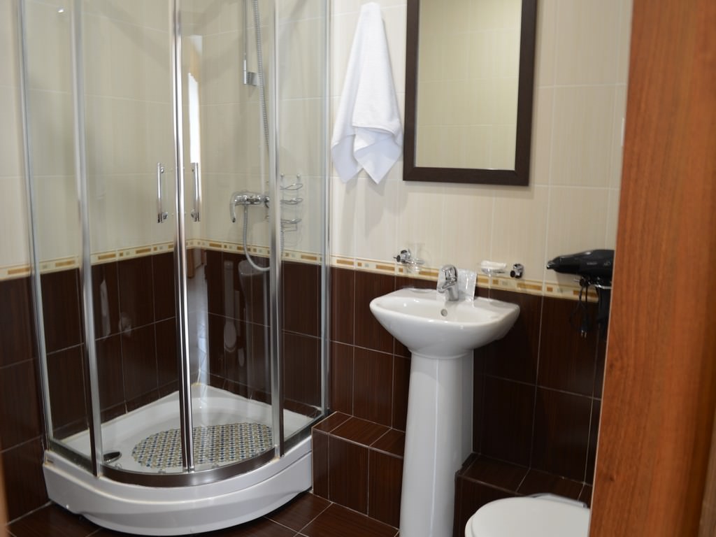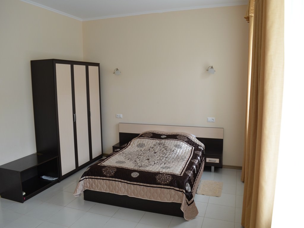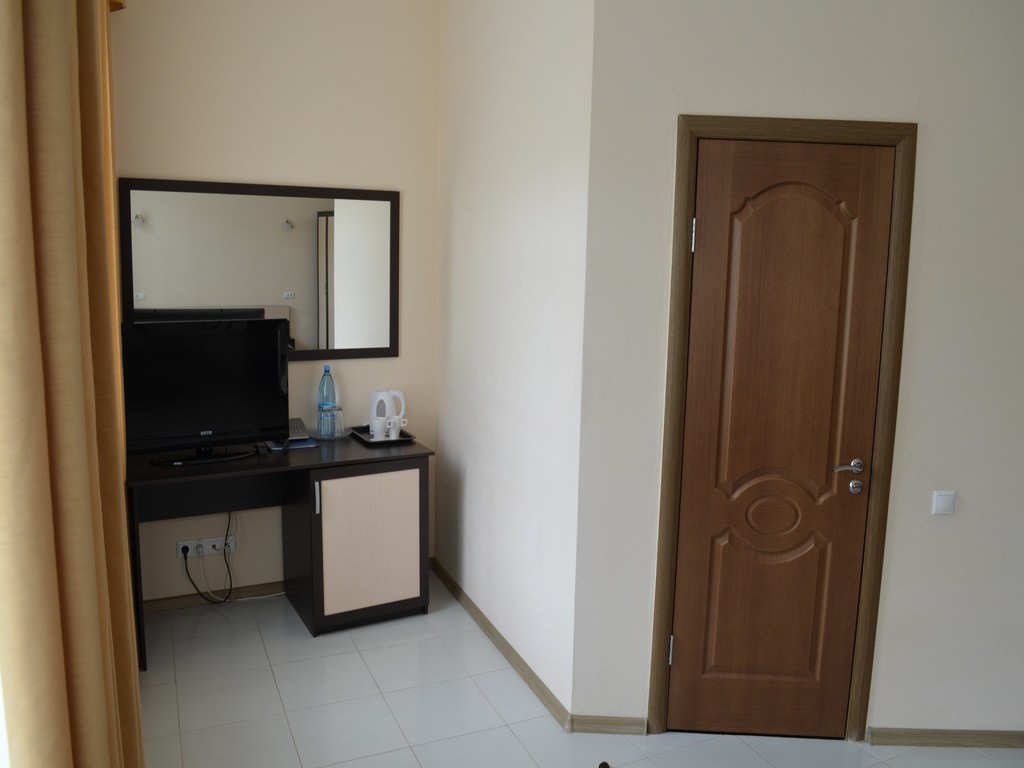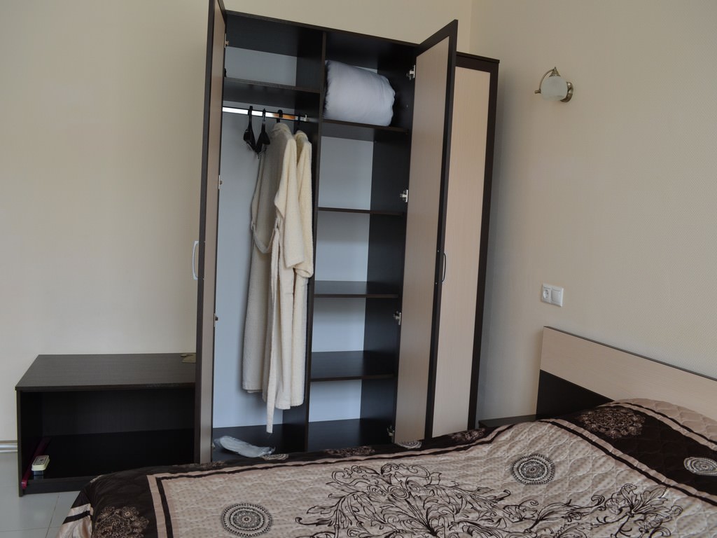 2 осн. места. Мебель: вешалка, зеркало, кровать двуспальная, прикроватные тумбочки, столик туалетный, стулья, шкаф. Оборудование: телевизор, телефон, холодильник (на этаже), чайный набор посуды, электрочайник (а также кулер с водой на этаже). Санузел: с душем, тапочки, туалетные принадлежности, фен, халат. Сервис: смена полотенец (по требованию/либо раз в 5-6 дней), смена постельного белья (по требованию/либо раз в 5-6 дней), уборка номера (ежедневно).